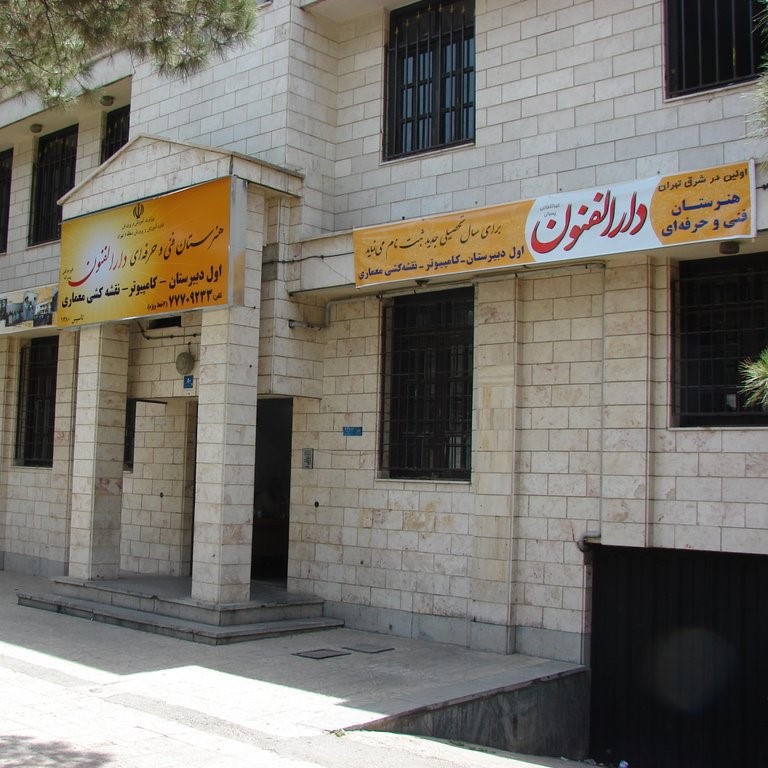 نام هنرستان:دارالفنون      نوع هنرستان:غیر دولتی     تلفن: 77709233(021)              رشته ها:کامپیوتر                                                                                                نشانی:منطقه 4،تهرانپارس خ 202شرقي (خدابنده) – بين مظفري و خيري- پ 50